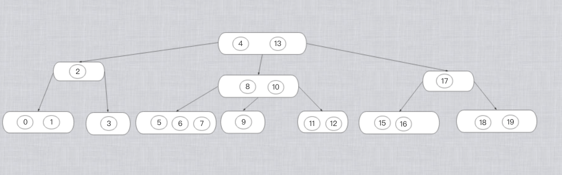 b . 每个节点至多可包含 2t-1 个关键字,至多 2t 个孩子节点。
