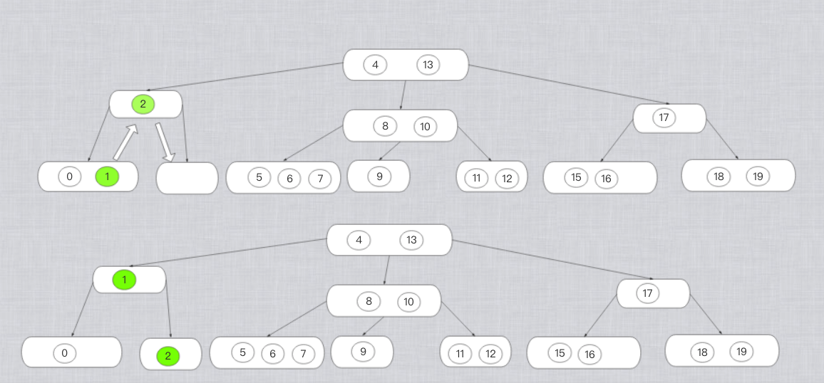 # 左旋转 父节点拿下一个key 父节点右边第一个子树的根节点上升一个节点