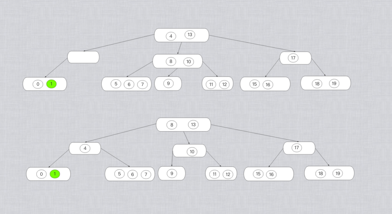 # 如果左边的兄弟为空 则把这个节点和右边的节点合并