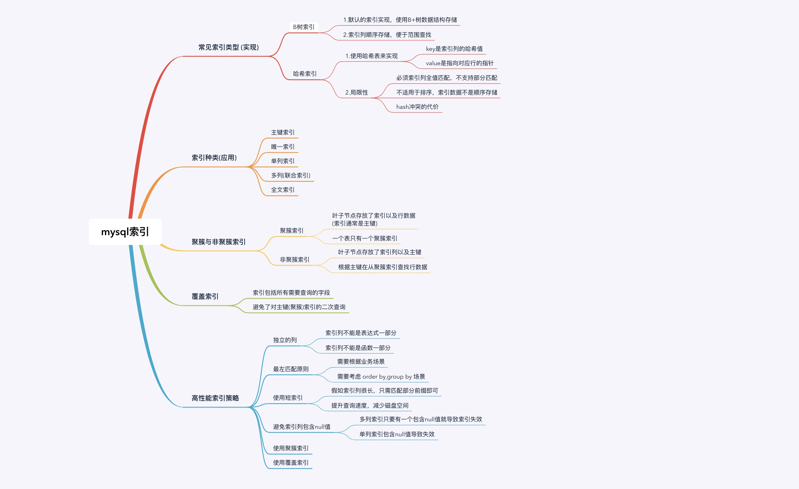 - 不会出现在where条件中的字段不该建立索引。