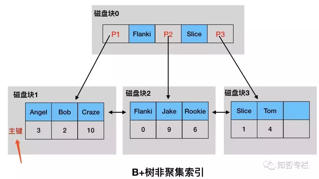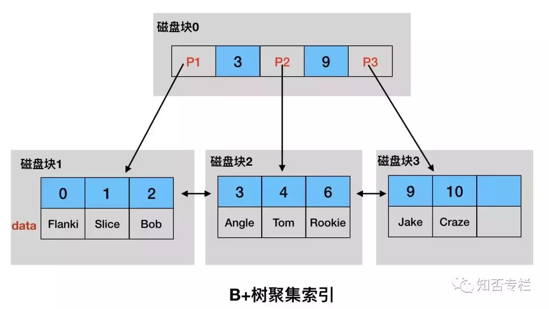 B 树的索引结构:
