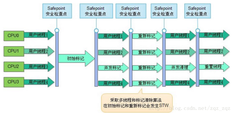 为了加快此阶段处理速度,减少停顿时间,可以开启初始标记并行化,-XX:+CMSParallelInitialMarkEnabled,同时调大并行标记的线程数,线程数不要超过cpu的核数