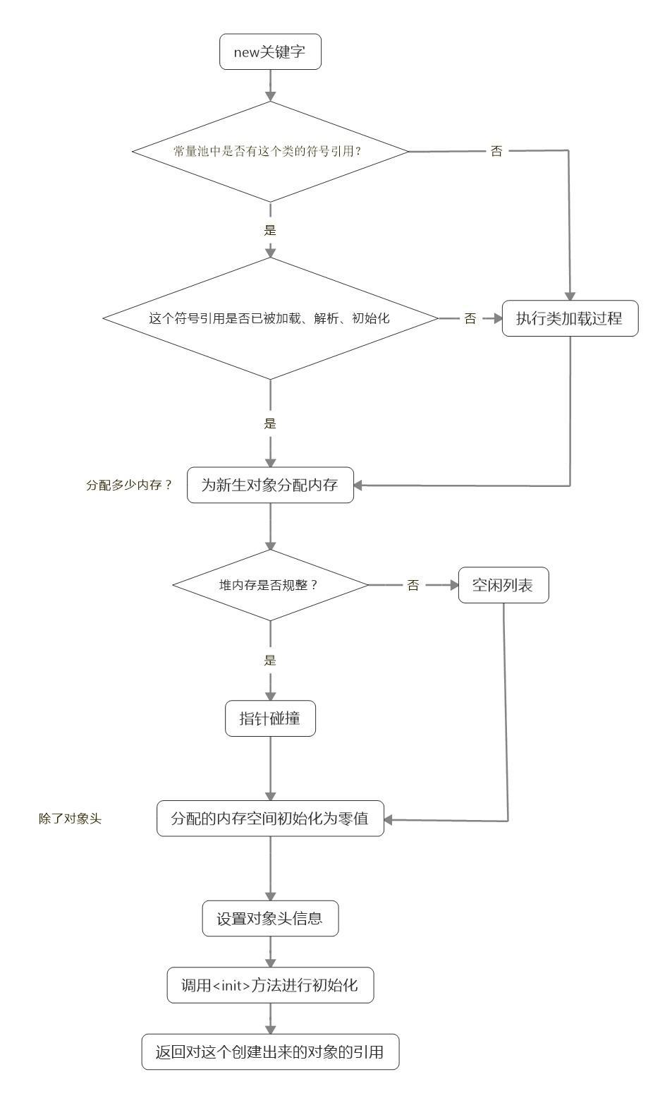 一个典型的java对象的创建过程和在堆中分配过程如下: