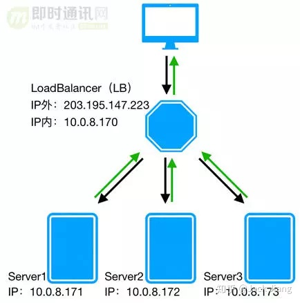 以常见的TCP为例,负载均衡设备在接收到第一个来自客户端的SYN 请求时,即通过上述方式选择一个最佳的服务器,并对报文中目标IP地址进行修改(改为后端服务器IP),直接转发给该服务器。TCP的连接建立,即三次握手是客户端和服务器直接建立的,负载均衡设备只是起到一个类似路由器的转发动作。在某些部署情况下,为保证服务器回包可以正确返回给负载均衡设备,在转发报文的同时可能还会对报文原来的源地址进行修改。