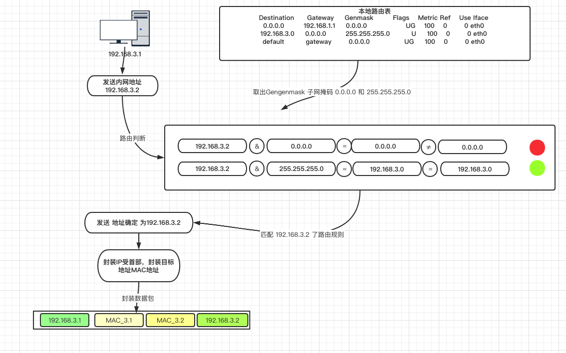 当一个网络主机要跟本网通信时候,需要用到一个叫路由表的,路由表用于目标地址的转换。