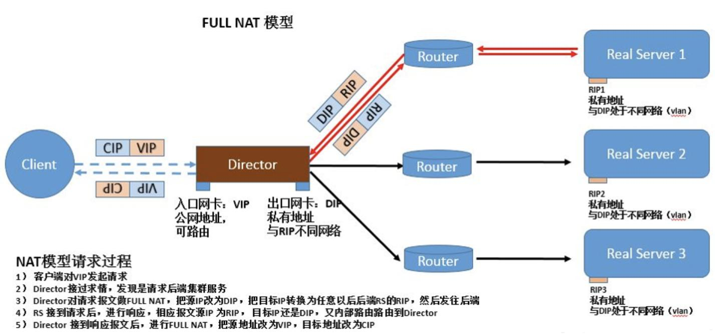 - FULLNAT模式也不需要DIP和RIP在同一网段