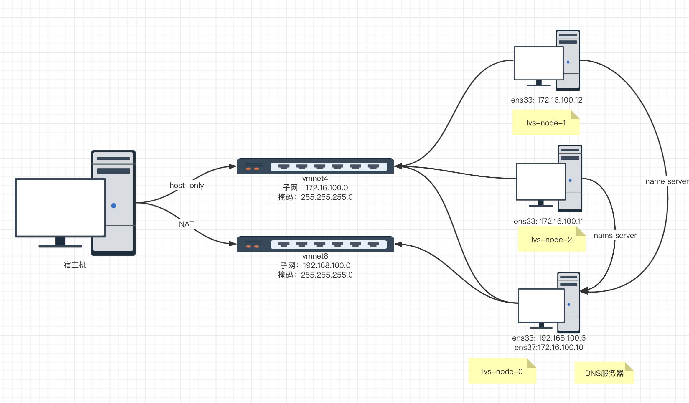 1 | 并设置 lvs-node-1.exmaple.com 为 172.16.100.11 |