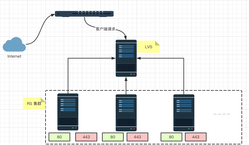 当A客户端访问的是80端口时保持连接没有问题,但是当A客户端用443端口访问时,这对于LVS的443端口集群来说这是一个新的用户请求,A用户之前通过80端口访问的连接记录在80集群的缓存上保存着呢?443端口集群没有呀!所以就会出现上述情况。