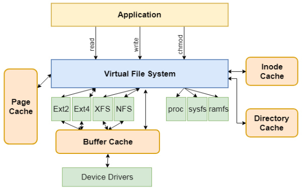 通过VFS系统,Linux提供了通用的系统调用,可以跨越不同文件系统和介质之间执行,极大简化了用户访问不同文件系统的过程。另一方面,新的文件系统、新类型的存储介质,可以无须编译的情况下,动态加载到Linux中。