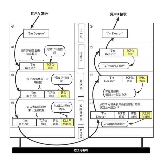 每个分层中,都会对所发送的数据附加一个首部,在这个首部中包含了该层必要的信息,如发送的目标地址以及协议相关信息。通常,为协议提供的信息为包首部,所要发送的内容为数据。在下一层的角度看,从上一层收到的包全部都被认为是本层的数据。