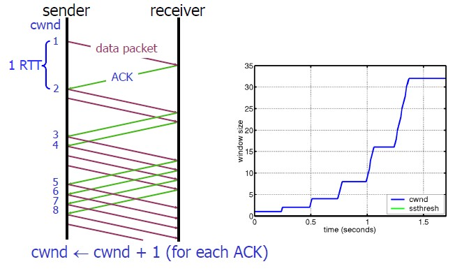 3)每当过了一个RTT,cwnd = cwnd*2; 呈指数让升
